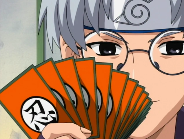 Dihina oleh Kabuto beberapa ketika yg kemudian ketika ia menyebutkan tentang desa-desa, yg dimana beliau dikategorikan Otogakure menjadi desa mungil, tiga ninja Oto menyerang Kabuto. Meskipun Kabuto berhasil menghindari serangan, kacamatanya datang-tiba pecah dan dia menjadi mual meskipun tidak terkena agresi.