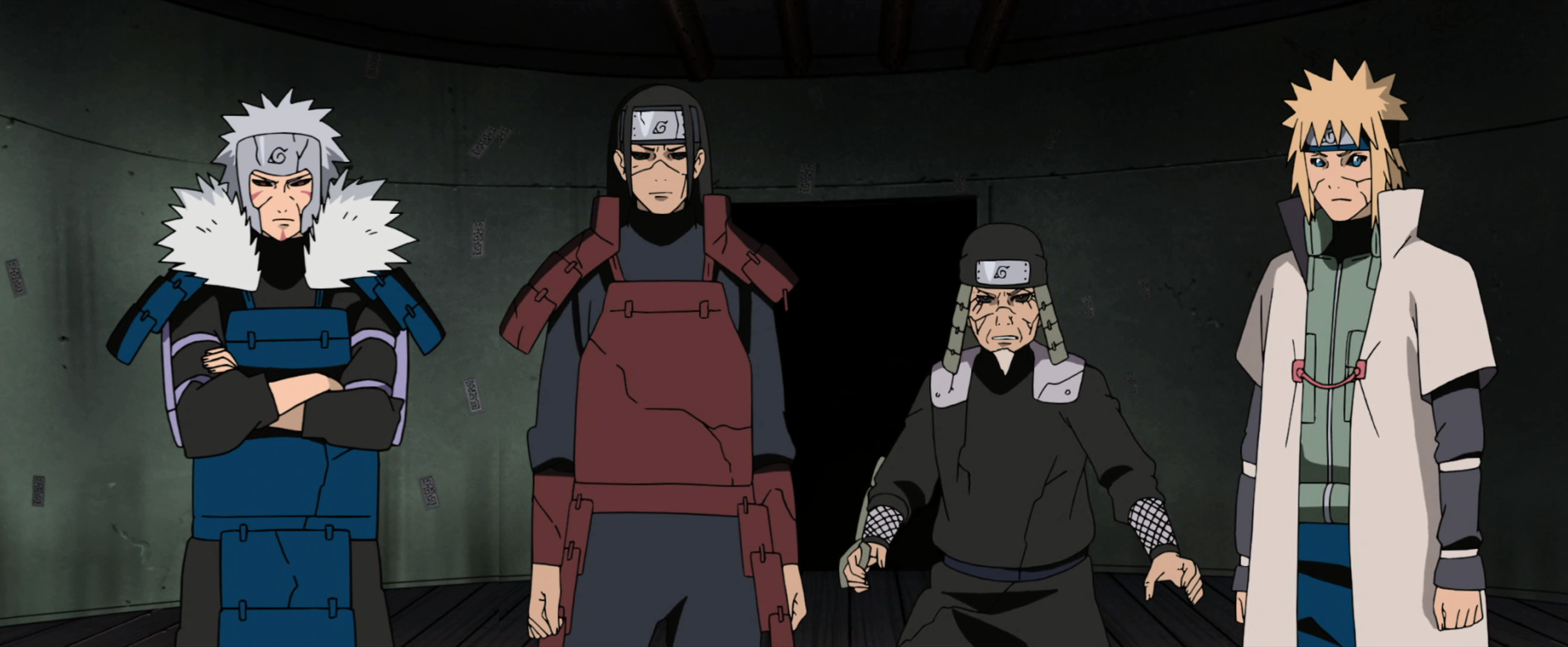 Hiruzen menceritakan Sasuke dan memberitahu tentangItachi dan desa, lalu Orochimaru bertanya mengenai kebijakan Tobirama terhadap Uchiha selama waktu kekuasaannya, dan menyebutkan bagaimana Uchiha menjadi korban perasaan yang kuat. Sasuke bertanya pada Hashirama apa desa dan tujuan asal shinobi, sebagai akibatnya kentara jawabannya akan memilih tindakan Sasuke. Tobirama marah, serta meengeluarkan chakra nya, lalu Hashirama pula menyala, hampir membentuk Kuil Naka runtuh. Hashirama memuji Itachi, serta mengungkapkan bahwa jawaban yang tepat akan memakan ketika.