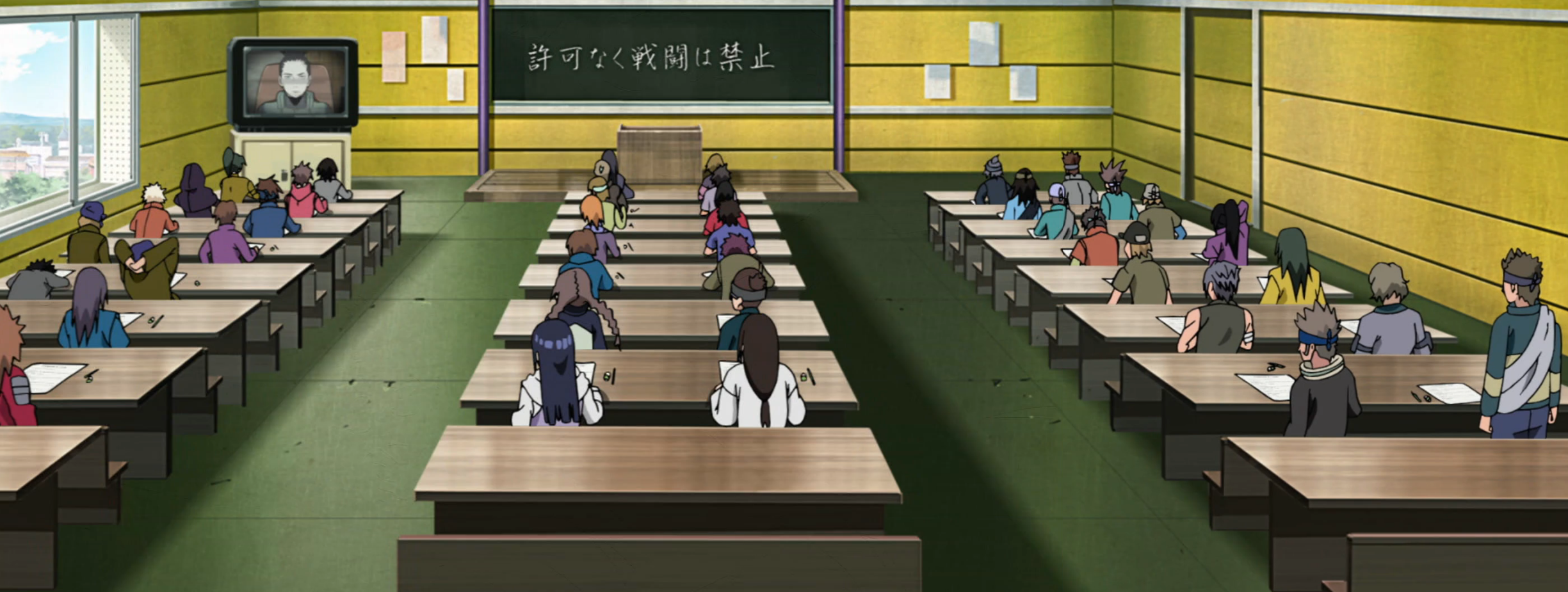 semua genin tiba menunggu dalam antrean buat bagian pertama berasal ujian. Konohamaru, kecewa bahwa Narutotidak akan menghadiri Ujian Chunin teranyar dan ketakutan ini bisa mengakibatkan dia tidak pernah menjadi Chunin, menyamar sebagai Naruto untuk berpartisipasi, tetapi dapat diketahui oleh Neji. Semua Genin berpartisipasi ditempatkan di tiga ruang terpisah buat mengikuti tes, yg dikarang sesuai planning Shikamaru. Bila satu dari mereka menerima skor yg lebih tinggi atau di bawah total skor 100, mereka gagal tes. Genin berasal setiap ruang mencoba buat menyimpulkan ujian Shikamaru, serta mirip yang mereka lakukan, Sakura serta Neji datang ke kesimpulan bahwa semua anggota setiap tim harus sama dengan nilai yang diperlukan buat lulus. Menggunakan itu, Neji mulai berjalan di sekitar ruangan, menangkap perhatian orang lain.